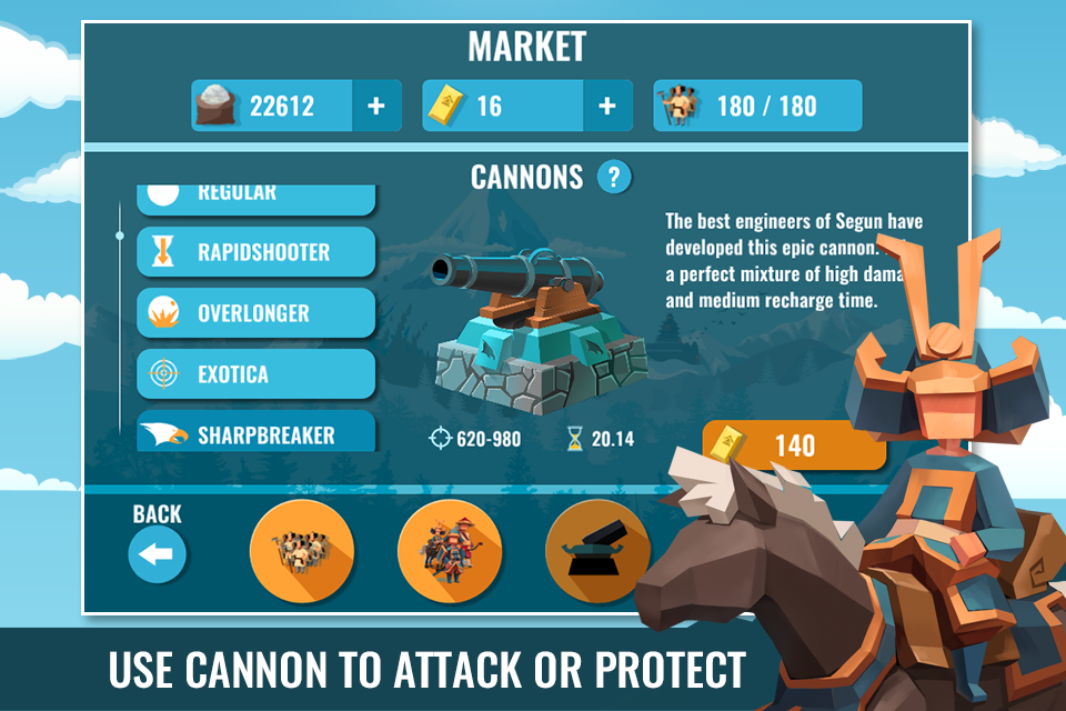 很久以前,武士大陸曾經是個寧靜祥和的地方,但是現在,他們正在戰(zhàn)斗并爭奪最佳武士的席位!進攻敵人的城堡并停止他們進攻你!加強你的部隊并明智的使用強大的火炮來組合你的武士發(fā)動進攻。實時的指揮你的武士軍團,讓他們成為最強大的武士!