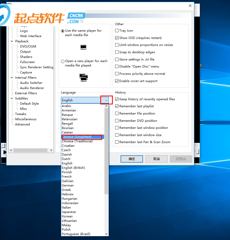 二、MPC-HC設(shè)置為中文的方法