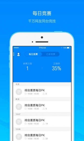 4、每日提供專項(xiàng)競(jìng)賽,模擬真實(shí)考試環(huán)境,助你輕松提升實(shí)戰(zhàn)力,考試時(shí)更有把握;