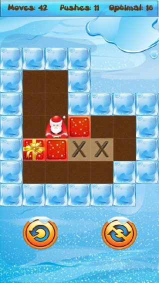 幫助圣誕老人安卓版是一款經(jīng)典好玩的推箱子游戲,游戲?qū)⒈┖褪フQ老人完美的融合在推箱子游戲中,玩家在一個被冰塊包圍的雪地里,要求把紅色的箱子放到指定的位置,稍不小心就會出現(xiàn)箱子無法移動或者通道被堵住的情況,所以需要巧妙的利用有限的空間和通道,合理安排移動的次序和位置,才能順利的完成任務(wù)。
