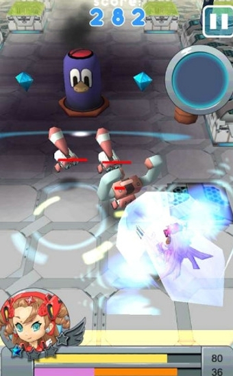 1、玩家可以自由移動(dòng)女孩,通過觸屏射擊來消滅各種萌萌的敵人;2、還得躲避各種機(jī)關(guān)陷阱喲!