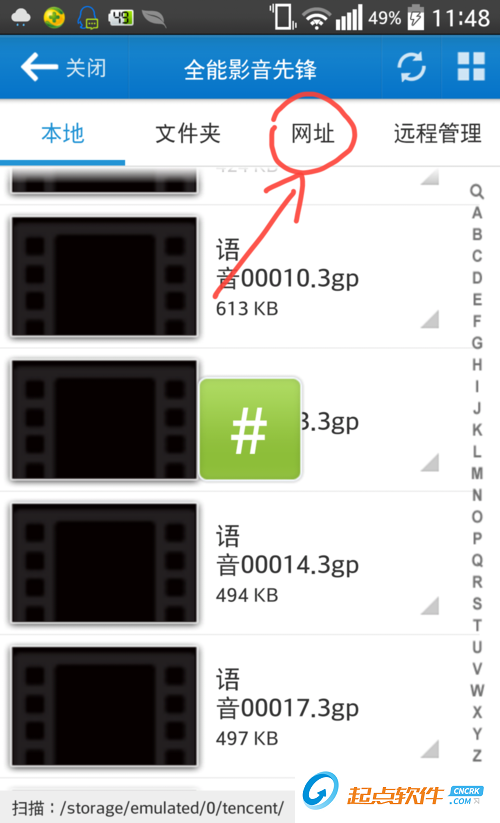 現(xiàn)在來看看主要的播放功能吧,看看效果如何,點擊文件夾,可以查看手機上的視頻的文件。點擊一個進行播放。