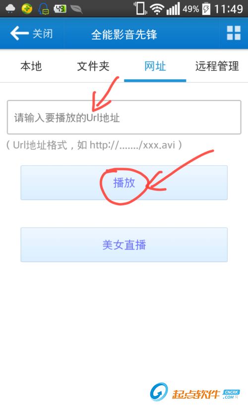 進入之后可以看到這是一個可以直接輸入播放視頻連接地址的功能。將你的視頻鏈接地址輸入到這里不需要下載就可以直接播放了,這個功能以前有些軟件都有過,不算是新功能了。