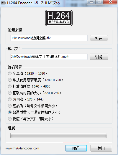 下載解壓后,運行 h264encoder.exe 打開軟件,分別選擇您要轉(zhuǎn)換的視頻文件,以及轉(zhuǎn)換后文件存放的目錄