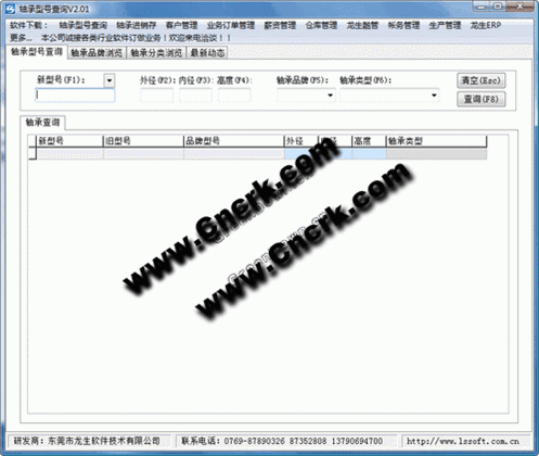 龍生軸承型號查詢系統(tǒng)V2.01,經(jīng)過近一年的數(shù)據(jù)收集、整理和開發(fā),收集了近10萬條軸承型號數(shù)據(jù).該軟件涵蓋了包括:深溝球軸承,調(diào)心球軸承,角接觸球軸承,圓柱滾子軸承,調(diào)心滾子軸承,圓錐滾子軸承,推力球軸承,推力滾子軸承 滾針軸承 、直線運動軸承,關(guān)節(jié)軸承,帶座外球面球軸承等軸承規(guī)格信息,并包括AET、ASAHI、ASK、BARDEN、DKF、EASE、FAFNIR、FAG、FLT、GMN、IKO、INA、KOYO、AC、 MRC、NTN、NACHI、NSK、RIV、RHP、SKF、SNFA、SNR、STEYR、UBC、THK、ORRINGTON、ZKL等進口品牌軸承的型號對照信息及部分國產(chǎn)軸承的型號對照信息。軸承型號及新舊軸承型號對照等功能,便于從事軸承使用者、軸承銷售人員及軸承設(shè)計和機械設(shè)計人員日常工作中的查詢。