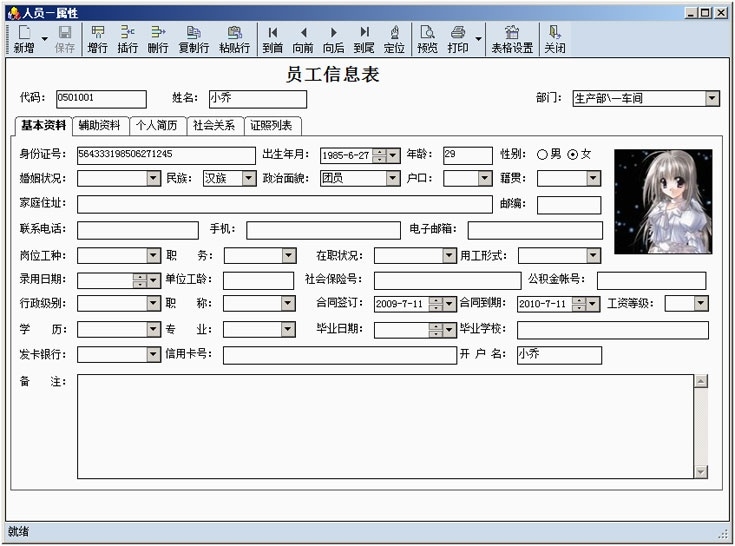 支持員工檔案信息管理界面任意自由排版,自由添加新項目。