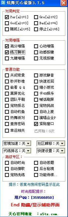 QQ炫舞天心輔助是最新的QQ炫舞輔助,該輔助支持全模式perfect,支持自動時尚S-3S自動答題,有需要的可以來本站下載。【軟件特點】