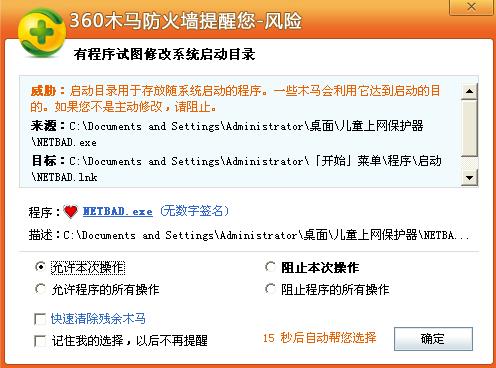 4、開始干擾,軟件會在啟動菜單里產生一個快捷方式,安裝了360衛(wèi)士的電腦會出現(xiàn)如下對話框: