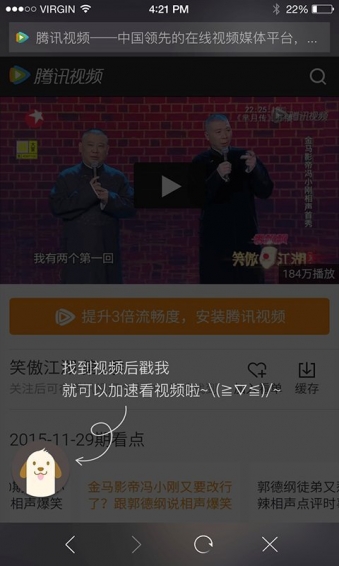 【更懂你】還在為追一部電視劇而下一個視頻站點的APP而惆悵嗎?只需要有視頻加速狗,就能幫你在瀏覽器上看盡動漫,熱劇,電影。