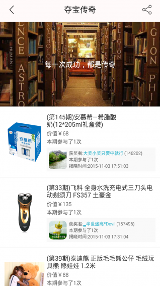 惠奪寶app是眾籌網(wǎng)站與輕量級(jí)電商的結(jié)合,所有商品通過(guò)眾籌的方式購(gòu)買。只要一元就有機(jī)會(huì)獲得你夢(mèng)寐以求的潮流新品。【軟件特色】