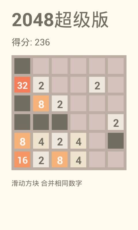2048超級版是一款以2048為原型,并進(jìn)一步優(yōu)化改編的數(shù)字休閑類游戲,這款2048游戲的玩法與原作一致,都是將數(shù)字合并,最后求得2048值,不過本作在這個(gè)基礎(chǔ)上將難度提高,游戲不再局限于4X4的格局,數(shù)字移動(dòng)過程中還會(huì)有障礙物出現(xiàn),玩家可以從中找到更多的樂趣,體驗(yàn)不一樣的數(shù)字合并。