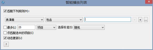 智能播放列表可以根據(jù)自己的需要制定規(guī)則,比如自動(dòng)添加“最近添加的”音樂(lè)到列表中,或是只添加某個(gè)歌手的音樂(lè),等等。