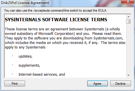 disk2vhd 能夠運(yùn)行在 Windows XP SP2,Windows Server 2003 SP1 或更高版本的系統(tǒng)之上,并且支持 64位系統(tǒng)。但是需要注意的是受虛擬化平臺產(chǎn)品對 VHD 的限制,比如 Microsoft Virtual PC 僅支持最大 127G 的虛擬磁盤(VHD),那么你所轉(zhuǎn)換的 VHD 則不能高于這個限制