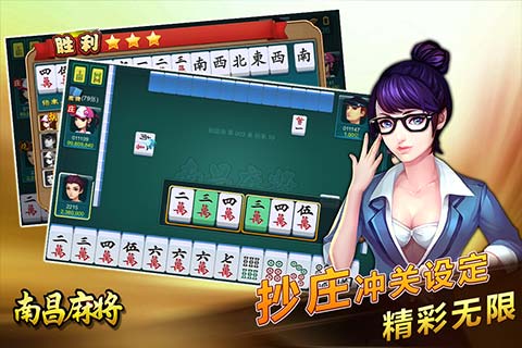 特色1:翻精是南昌麻將的最大特色,由于精在牌局中的萬能搭配功能,在牌局后的獨(dú)立算分功能,使之成為追分翻牌的利器,很多玩家寧愿不胡牌也要多摸精不是沒有道理的。精:精就是萬能牌、百搭牌或者癩子,可以代替任何一張牌(杠除外)。翻開的牌為一萬,即一、二萬為精,其中一萬為正精,二萬為副精。翻開的為九萬,則九萬是正,而一萬為副;如翻開為北風(fēng)則北風(fēng)、東風(fēng)為精,其中北風(fēng)為正精,東風(fēng)為副精;翻開為紅中,則紅中為正,發(fā)財(cái)為副,同樣精牌也可以作為自身牌使用。特色2:截胡:南昌麻將只允許一家胡牌,沒有一炮多響。如有一人以上同時表示胡牌時,從打牌者按逆時針方向,順序在前者被定為“胡牌者”,其他人被截胡。