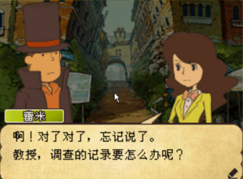基本系統(tǒng)和前作相比變化不大,本作是一款為NDS量身定做的經(jīng)典作品續(xù)作,因此游戲中的操作都可以用觸控筆來完成。上屏顯示的是地圖,并且在上屏下方會有下一步行動的指示,這樣一來,在流程的推進方面就不會有太大的問題。上屏左上方顯示的是目前解開的謎題數(shù)量,右上方顯示的是目前所在的地點名,方便隨時掌握當(dāng)前位置。當(dāng)要在各個場景移動時,只要點擊下屏右下角的鞋子圖標(biāo),下屏就會出現(xiàn)用來移動的箭頭,點擊箭頭就可以前往箭頭指示的地方。下屏右下角的圖標(biāo)代表雷頓教授的皮箱,可以進行儲存和隨時查看入手的謎題。
