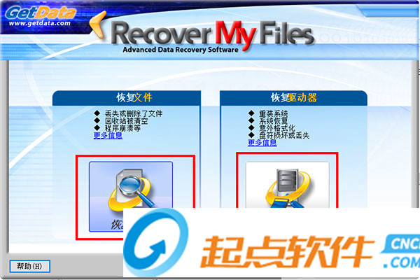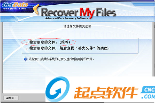 1、下載軟件壓縮包文件,點擊“RecoverMyFiles。exe”即可運行軟件,開始運行之后,Recover My Files會給出操作提示,首先選擇恢復(fù)類型如下圖所示:
