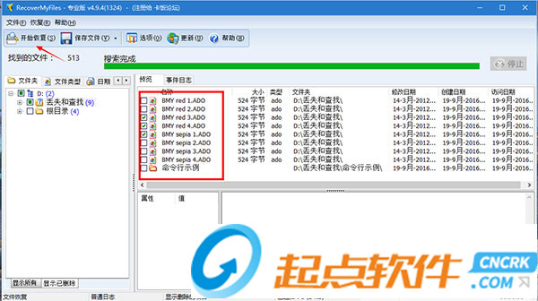 5、在需要恢復(fù)的文件前面打勾,選擇“開始恢復(fù)”按鈕即可,如下: