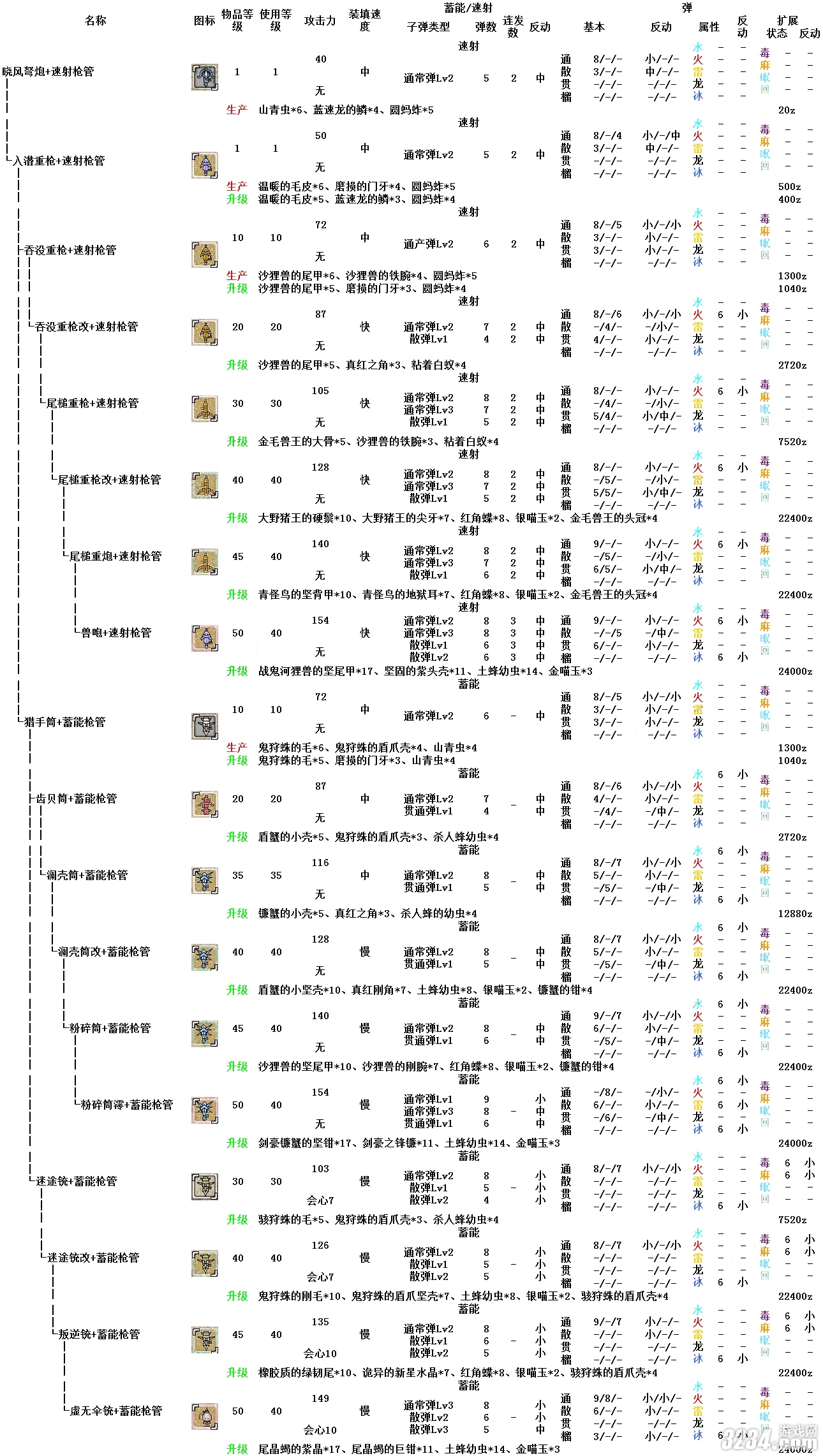 在此分享怪物獵人ol弩炮派生一覽表(2015年12月最新):
