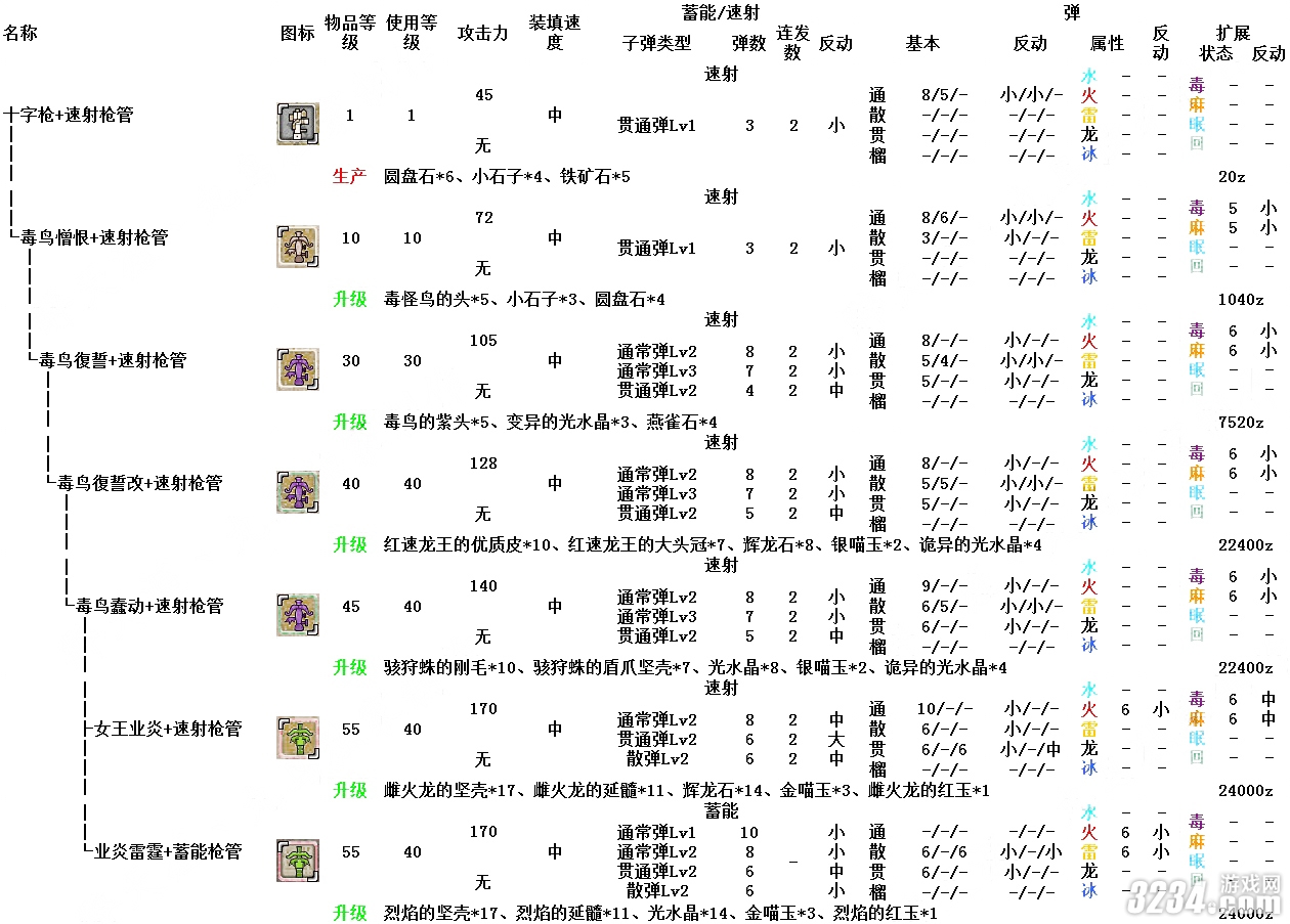 6、傷害最高的子彈是速射通常彈3,然后是散彈3,貫通彈3,最低的是榴彈3。