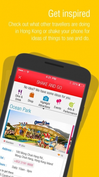 4、獲取靈感看看其他旅客正在做什么,搖動手機來獲得香港旅游的想法或檢查所發(fā)生的事情在你身邊。