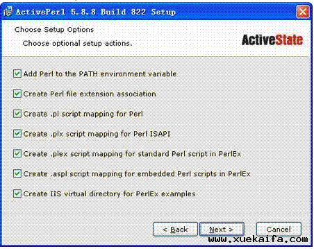 雙擊activeperl安裝界面,一直點(diǎn)擊next直至完成安裝,activeperl的選項(xiàng)都是默認(rèn)的選項(xiàng),依照默認(rèn)安裝。如果只能選擇前兩項(xiàng),后面幾項(xiàng)是灰色不可選狀態(tài),請不要奇怪,認(rèn)真核實(shí)你的系統(tǒng)是否真的安裝了IIS