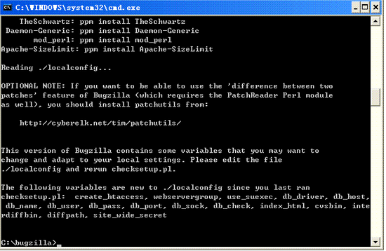 若安裝成功將會(huì)在bugzilla目錄下生成一個(gè)localconfig文件。
