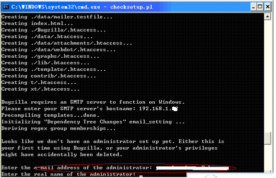在命令行下再次運(yùn)行checksetup.pl將會(huì)生成和數(shù)據(jù)庫有關(guān)的數(shù)據(jù)表,