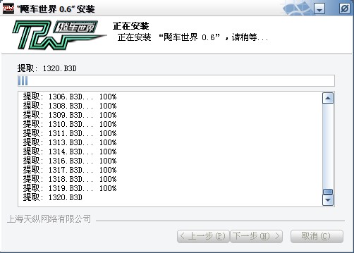 選擇目標(biāo)位置后如果繼續(xù)安裝,則《飚車世界》會(huì)自動(dòng)安裝,可以看到《飚車世界》的安裝過程。