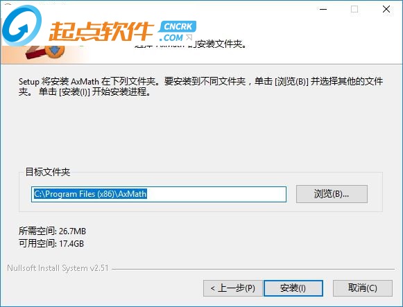 4、設置安裝的位置,這里默認是C:\ProgramFiles(x86)\AxMath,可以自己修改