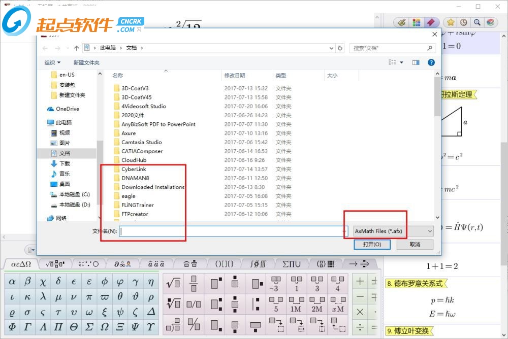 打開功能,可以將您以前編輯的.afx格式的公式加載到軟件上重新編輯,可以將您編輯完成的公式輸出為.afx保存