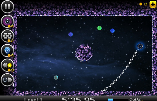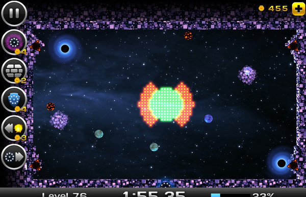 青睞之光SpaceXonix是SRFGames制作發(fā)行的一款太空冒險(xiǎn)游戲。游戲中需要你利用重力感應(yīng),控制你的飛碟在太空劃分自己的領(lǐng)地。當(dāng)領(lǐng)地達(dá)到一定的百分比時(shí),就可以完成關(guān)卡,非常考驗(yàn)協(xié)調(diào)能力以及眼力。游戲中還有豐富的道具可以使用,可以用過(guò)關(guān)的金錢(qián)獎(jiǎng)勵(lì)進(jìn)行購(gòu)買(mǎi)。