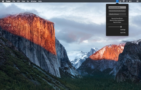 DasDeutschlandradioMac版打開(kāi)后,只存在于屏幕的頂部區(qū)域菜單欄。單擊該軟件圖標(biāo)可以讓你調(diào)取三種不同的廣播電臺(tái)之一,右擊可以立即靜音。電臺(tái)的選取取決于你選擇的圖標(biāo)的顏色變化。因此用戶可以直接看到正在播放的電臺(tái)。如果覺(jué)得你聽(tīng)到的東西很有趣,你可以用左鍵點(diǎn)擊該圖標(biāo)程序,獲得該電臺(tái)的詳細(xì)信息。