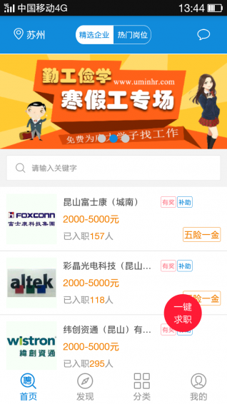 具備求職、推薦有獎(jiǎng)、小時(shí)工專場、兼職專場等功能。另外平臺(tái)還為求職者提供求職攻略、求職新聞等求職策略。