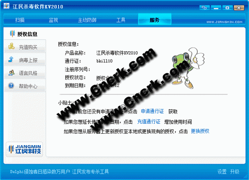 基于江民殺毒軟件KV2010標準版制作,整合授權(quán)到期時間為2011年9月30日!