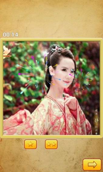 本游戲根據(jù)一款電視劇改編而來。采取了最具特色的高清圖片還原節(jié)目內(nèi)容,可以讓小朋友在拼圖過程中回味電視劇的精彩,在快樂中考驗(yàn)記憶力、智力和動(dòng)手能力。你喜歡帥氣的屠蘇還是美麗的晴雪呢?快來試試吧。進(jìn)入游戲后點(diǎn)擊開始迅速記憶圖片的位置然后還原就可以了,如果放置位置正確會(huì)有正確的提示音哦。