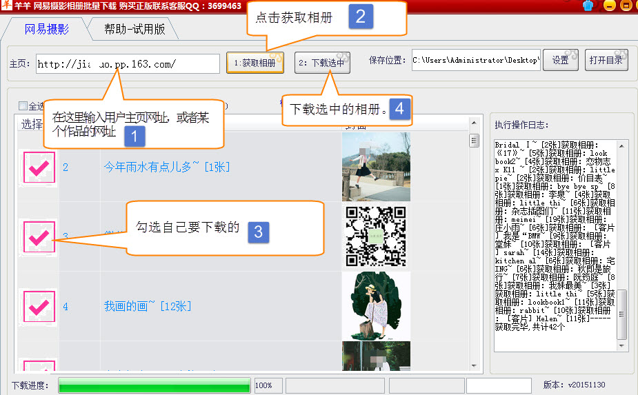 羊羊網(wǎng)易攝影相冊批量下載工具 1.0 綠色版