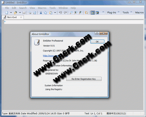 EmEditor Professional V10.06 32Bit 莫尼卡漢化安裝版 簡單好用的文本編輯器,支持多種配置,自定義顏色、字體、工具欄、快捷鍵設(shè)置,可以調(diào)整行距,避免中文排列過于緊密,具有選擇文本列塊的功能(按ALT 鍵拖動鼠標(biāo)),并允許無限撤消、重做,總之功能多多,使用方便,是替代記事本的最佳編輯器