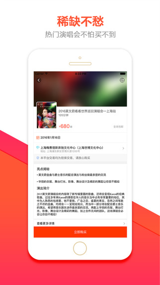 真實(shí)的票務(wù)資源,貼心的售后服務(wù),不間斷的驚喜活動,有深度的良心劇評。在這里不僅能買到票,賣出票,還能交到志同道合的觀演小伙伴,讓您的觀演過程不再乏味單調(diào)。