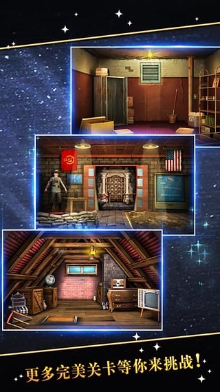 3D固定視角模擬真實(shí)環(huán)境游戲采用3D固定視角的畫面形式,與傳統(tǒng)的3D游戲有所不同,解密類游戲基本都無(wú)法自由移動(dòng)視角,只能切換為幾個(gè)不同的固定視角來觀察整個(gè)密室。游戲在畫面上面并不算真實(shí),雖然所有的物品都按照現(xiàn)實(shí)比例在描繪,但還是很容易看出它的效果并不太好,不過相比很多卡通作品來講,本作算是高大上的畫面表現(xiàn)了。