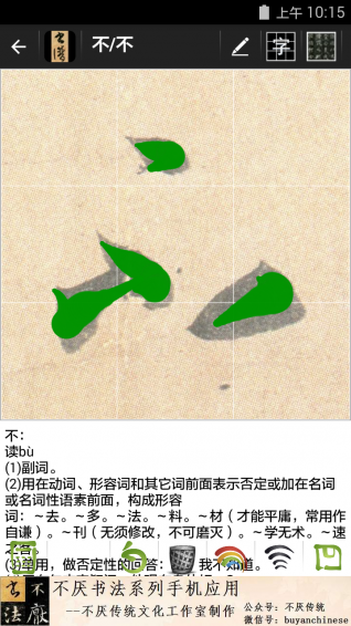 不厭書法孫過庭書譜是一款專門為書法愛好者量身打造制作的手機(jī)練字應(yīng)用,該軟件在第一次運(yùn)行后會對算法進(jìn)行訓(xùn)練以適應(yīng)不同手機(jī)屏幕,同時會展現(xiàn)給用戶不同的字帖模板,幫助您快速掌握字體寫法,提高自己的書法水平。