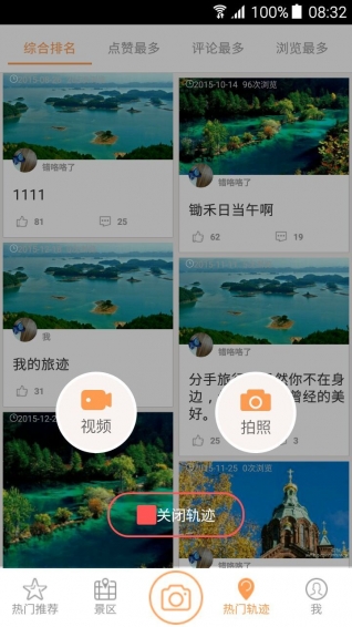 4、根據(jù)篩選排名查看熱門軌跡,在地圖上顯示,圖集,和位置,可以分享各平臺