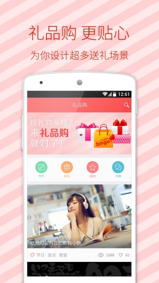 禮品購app是一款手機導(dǎo)購app,每日推薦更懂你的禮品專題、最具品質(zhì)的禮品,從美美的服飾到好用的美容護膚妝、從孕媽必備到寶寶成長等一切美好的東西,都能在這里找到,而且非常實惠,品質(zhì)還好。【軟件特點】