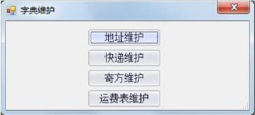 點(diǎn)擊【系統(tǒng)維護(hù)】圖標(biāo),打開系統(tǒng)的數(shù)據(jù)維護(hù)。如圖2所示。在系統(tǒng)維護(hù)窗體中,用戶可以選擇【地址維護(hù)】、【快遞維護(hù)】、【寄方維護(hù)】、【運(yùn)費(fèi)表維護(hù)】四個(gè)模塊,分別進(jìn)行維護(hù)。