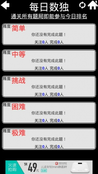 燒腦數(shù)獨(dú)是一款需要高智力高演算能力的邏輯游戲,玩家需要根據(jù)9×9盤面上的已知數(shù)字,按照一定的規(guī)則,推理出所有剩余空格的數(shù)字,同時(shí)保證同行、同列的數(shù)字中不會(huì)出現(xiàn)重復(fù)。