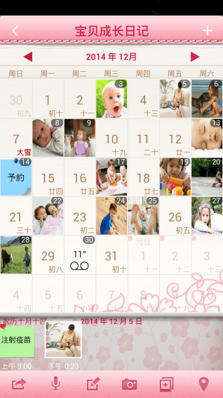 8.可隨時隨意地從您的手機中為日歷中的任何日期選取一張或多張相片。并為相片添加文字說明。