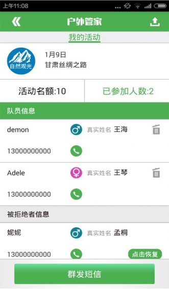 戶外管家-領(lǐng)隊(duì)版是一款戶外活動(dòng)管理工具。能幫助領(lǐng)隊(duì)更方便的發(fā)布信息,讓會(huì)員更快捷的報(bào)名,更好的組織戶外活動(dòng),讓領(lǐng)隊(duì)更輕松。