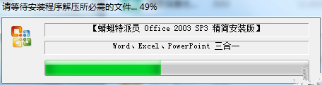 第二步:系統(tǒng)自動(dòng)安裝office2003精簡(jiǎn)版,等待即可。