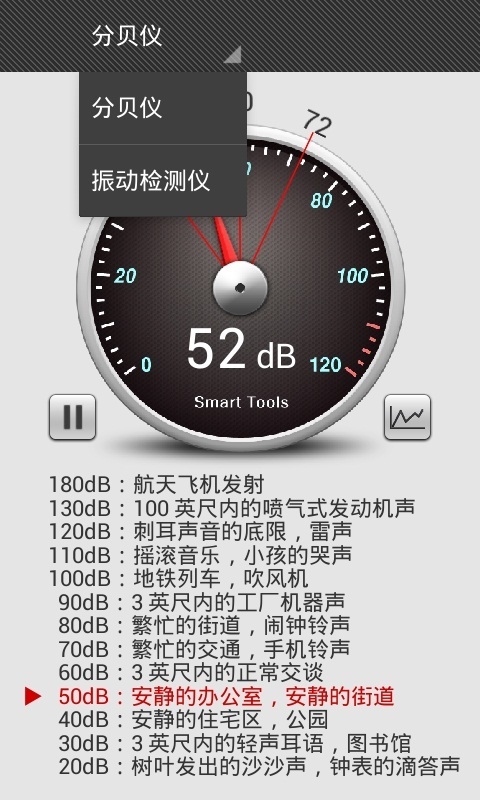 分貝儀app是一款非常好用的噪音檢測軟件,它利用手機麥克風(fēng)來測量環(huán)境中的噪聲大小,并且測試后將顯示一個分貝大小表供用戶參考,當(dāng)環(huán)境中的分貝值過高,會對人的心理及生理產(chǎn)生危害,為了家人的身心健康,趕快檢測一下身邊的分貝值吧!