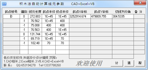 1、可計(jì)算任意線形(包括:直線、緩和曲線、圓曲線、匝道)等。2、附有正算、反算功能,正算:通過(guò)里程和偏距計(jì)算坐標(biāo),反算:通過(guò)坐標(biāo)反推里程和偏距。