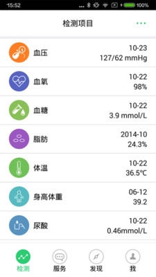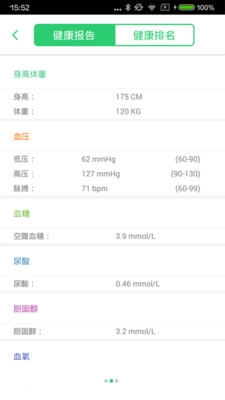 1、為用戶提供包括血壓、血氧、血糖、尿酸、膽固醇、心電、身高體重、體溫、人體成分等健康檢測項目